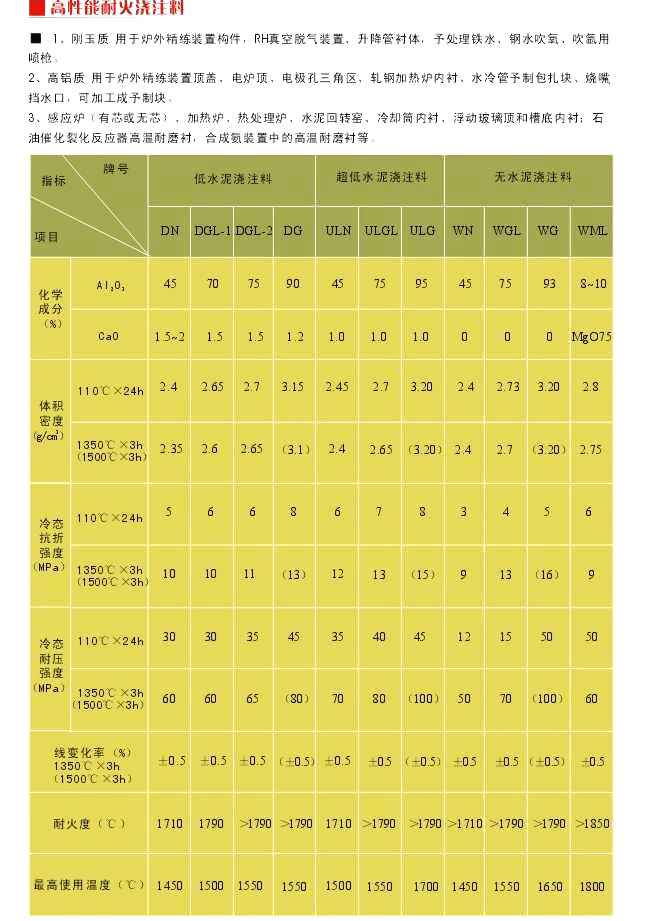 低水泥澆注料