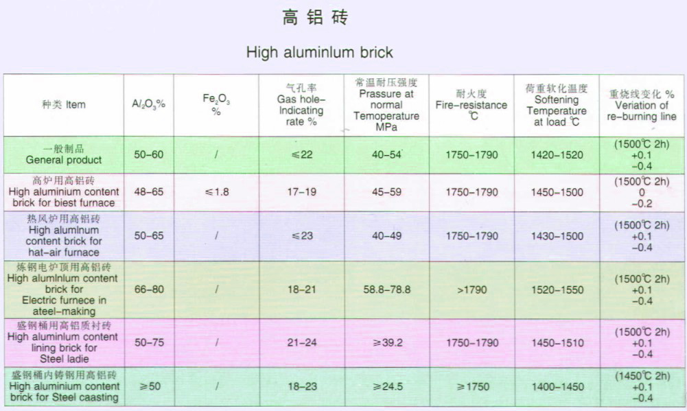 氧化鋁含量在48%以上的一種中性耐火材料。由礬土或其他氧化鋁含量較高的原料經成型和煅燒而成。熱穩定性高,耐火度在1770℃以上。抗渣性較好。用于砌筑煉鋼電爐、玻璃熔爐、水泥回轉爐等的襯里。